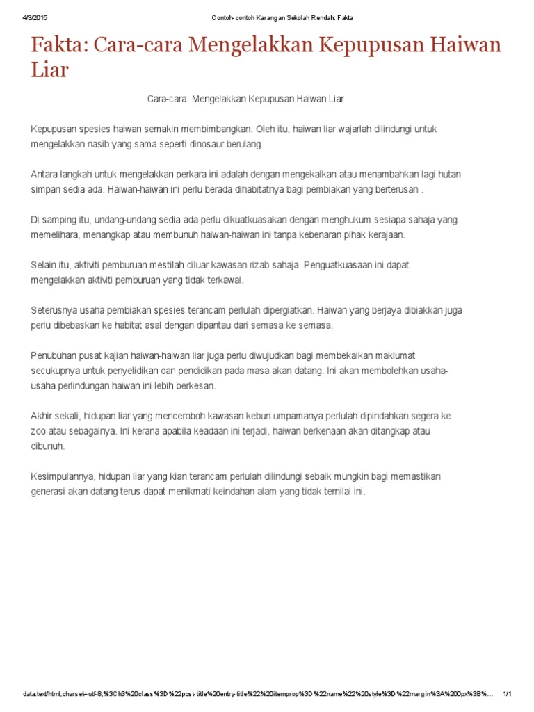 Contoh Contoh Karangan Sekolah Rendah Fakta Cara Cara Mengelakkan Kepupusan Pdf